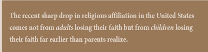 H. W. Crocker III writes in Crisis Magazine that “a recent, fascinating report from Lyman Stone at the Institute for Family Studies shows that the recent sharp drop in religious affiliation in the United States comes not from adults losing their faith but from children losing their faith far earlier than parents realize. The risk is less that a young person will lose his faith in college than that he lost his faith before he was fifteen, when he accepted that social media, online computer games, pop culture, and the Marvel Cinematic Universe constituted all the philosophy he needed; religion was irrelevant.“