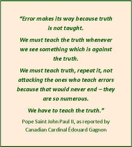 Pope Saint John Paul II advised parents to protect children: Teach them the Truth so they can recognize Error when they hear it from a “trusted authority.”