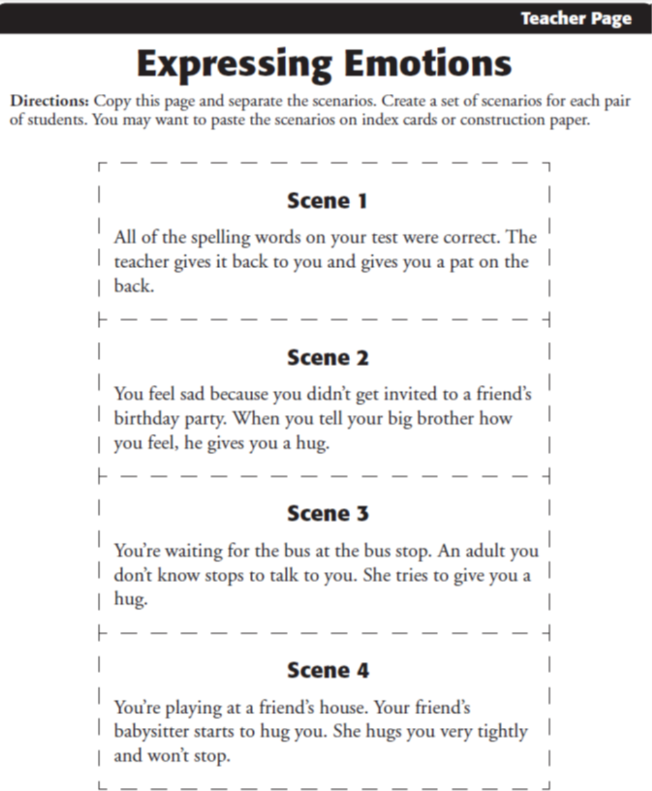 Children are presented with scenarios which may or may not happen, yet raise their anxiety about what may or may not be innocuous behavior of strangers and family members: